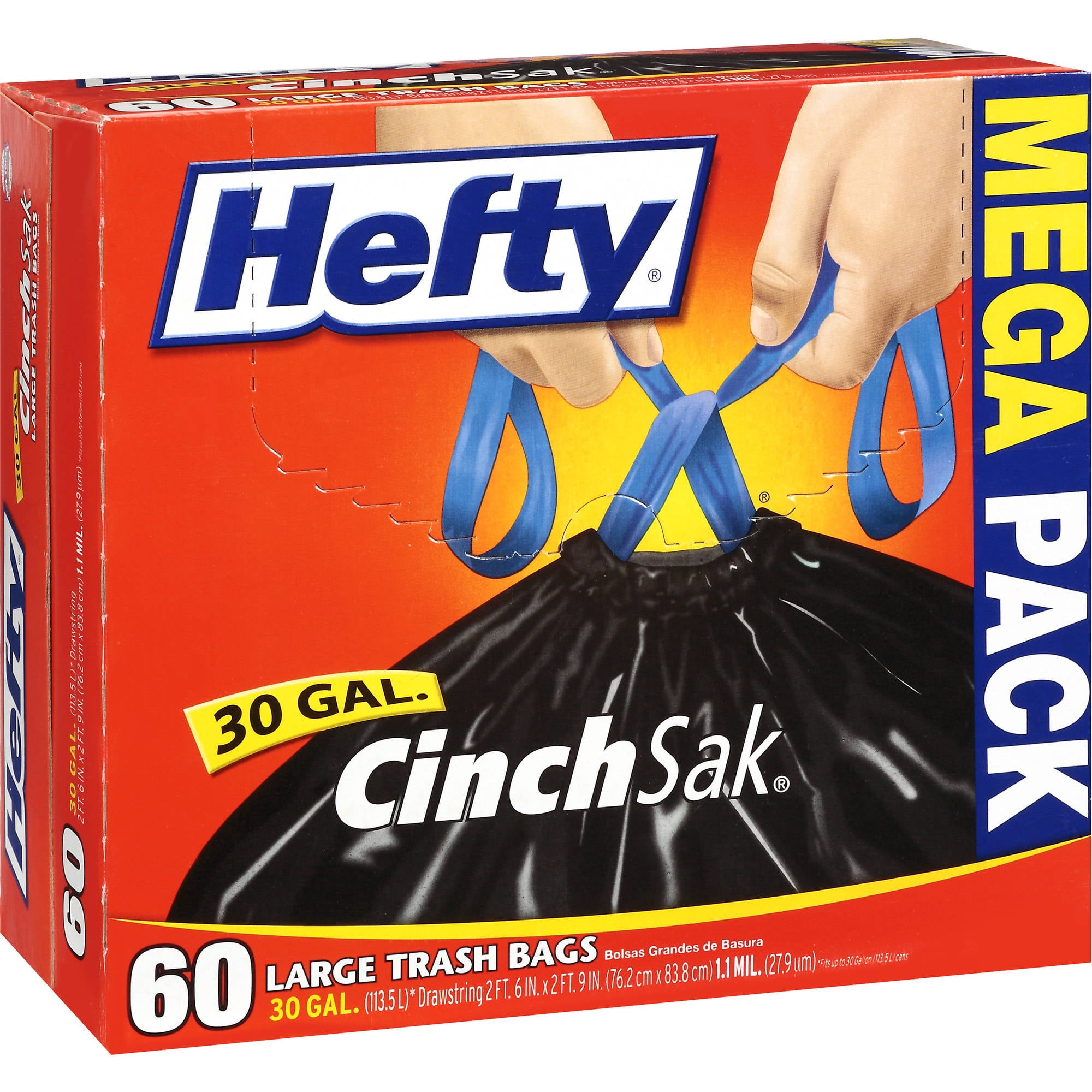Hefty 30 Gallon Large Cinchsak Drawstring Trash Bags 60 Pack Walmart Com